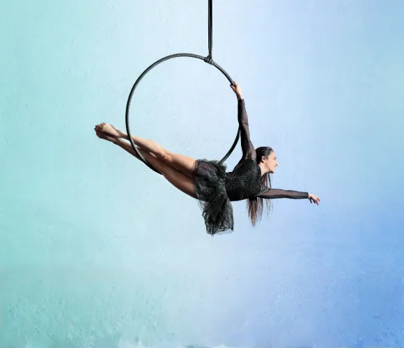 Arguably the most exciting class we offer, Aerial Hoop classes allow students to perform a whole range of skills whilst hanging from the ceiling. We follow the Aerial Arts syllabus from Acrobatic Arts and during each class students focus on spinning, balancing and posture skills whilst building strength and flexibility to ensure they can progress to the most advanced Aerial levels.